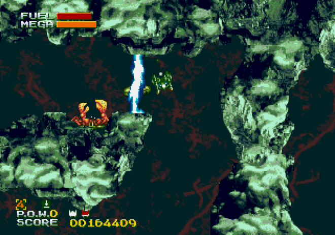 Les boss sont parfois gigantesques, ça bouge à toute vitesse, il n’y a jamais l’ombre d’un ralentissement, et le jeu profite même d’effets assez impressionnants comme la surface de l’eau représentée en 3D. C’est superbe ! Certes, on finit par se lasser un peu de toutes ces déclinaisons de roches et de plantes en guise de décor, mais on appréciera le soin avec lequel Zyrinx a tenu à placer les ambiances de ses différents niveaux, notamment par le biais d’une bande-son électronique d’une rare qualité. Là, au moins, on ne peut même pas dire que les sonorités ont vieilli : Jesper Kyd, qui travaille aujourd’hui encore sur les compositions de séries comme Borderlands ou Assassin’s Creed, a vraiment réalisé un travail magnifique qui ravira vos oreilles.