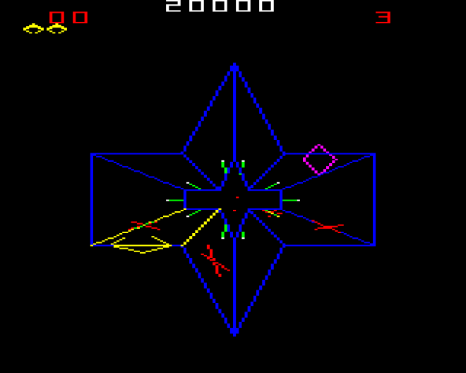 Il en résulte une pression et une exigence de tous les instants qui sont à la fois le principal intérêt du jeu et ce qui risque de le transformer en un pic de frustration au bout de quelques minutes. Contrairement à Ghosts’n Goblins, la mémoire n’a finalement que peu d’usage ici, l’expérience se limitant à essayer d’avancer le plus vite possible sous peine d’être enseveli sous les vagues ennemies, et si l’action se suffisait parfaitement à elle-même en 1985, on va dire que le concept aura largement eu le temps d’être repris et peaufiné depuis lors, ce qui donne assurément à cette borne « pionnière » un bon coup de vieux.