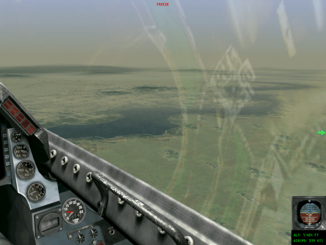 Quels que soient vos choix, il faudra obligatoirement une main sur le joystick, une autre sur le clavier dont chaque touche a une, sinon plusieurs, fonction, voire une troisième que vous devrez vous faire greffer à grands frais pour empoigner la souris afin de simplifier la navigation sur le tableau de bord – car oui, certaines actions comme le ciblage peuvent nécessiter que vous allier déplacer un curseur manuellement. Soyons au moins reconnaissant au programme d’avoir eu l’excellente idée d’inclure un système de « freeze », sort de pause active qui vous permet d’agir pendant que le temps est « gelé », car on doit souvent réaliser une dizaine d’actions dans un laps de temps extrêmement court au milieu d’un dogfight endiablé. Si tout ce que je viens de décrire vous intimide, autant vous préparer psychologiquement : on ne lance pas Falcon 4.0 pour se lancer dans le feu de l’action dix minutes plus tard, ni même deux heures. Avant d’aller gagner votre guerre, il va falloir la mériter !