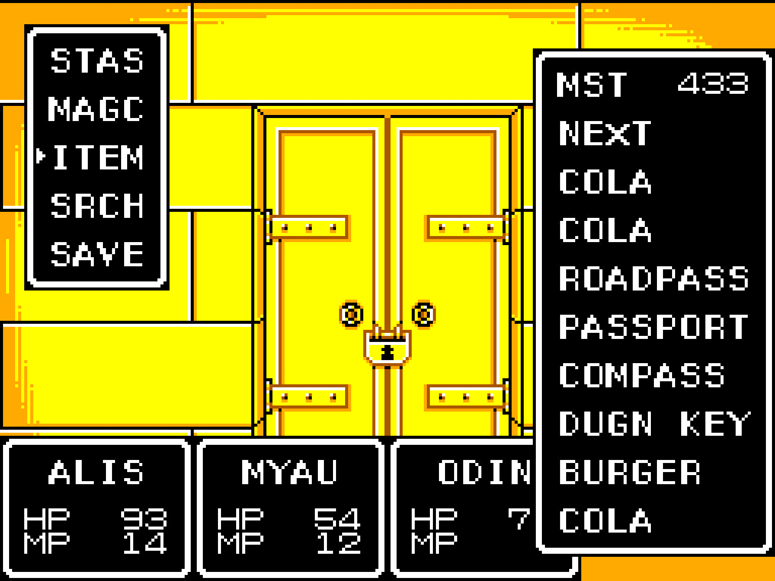 Pour ceux qui suivent, Phantasy Star sur Mega Drive n’est autre que le jeu Master System placé dans une cartouche intégrant directement l’adaptateur nécessaire à faire tourner le jeu sur la console 16 bits. C’est donc, stricto sensu, exactement le même jeu que sur Master System, au pixel près. Dommage qu’il ne soit disponible qu’en japonais
