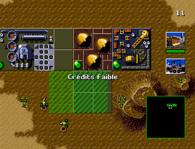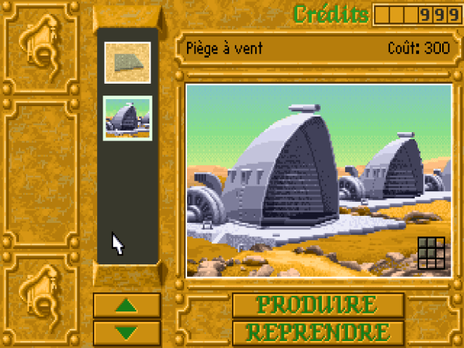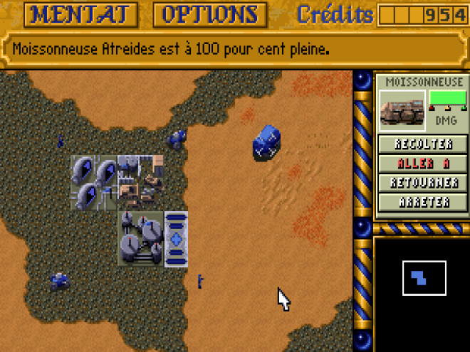 Quantité de petits bruitages (comme le bruit du compteur d’Épice en haut à droite) sont également passés à la trappe, appauvrissant l’ambiance sonore du jeu. En revanche, les doublages français ont été réenregistrés : fini l’accent étrange, et les soldats parlent enfin quand on clique sur eux, bon point de ce côté-là, donc.