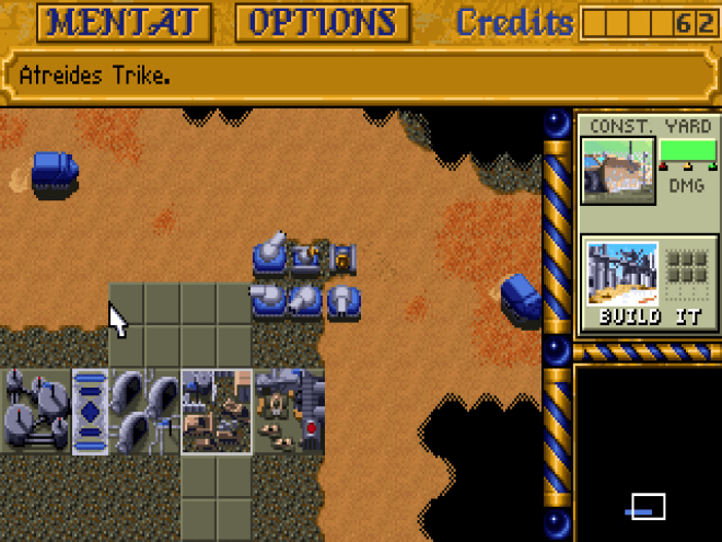 Si vous réunissez un groupe de joueurs de plus de trente ans pour leur demander le nom du tout premier jeu de stratégie en temps réel, une grande majorité d’entre eux lèvera aussitôt la main pour vous répondre en cœur : « Dune II ! » La petite minorité restante vous rétorquera, elle, qu’il s’agit en fait d’Herzog Zwei sur Mega Drive, avant qu’une minorité encore plus réduite n’évoque le premier Herzog, ou Carrier Command, et ainsi de suite jusqu’à remonter à d’antiques titres comme Stonkers ou The Ancient Art of War, voire même à des logiciels totalement confidentiels des années 70. Ce que Dune II (ou ses prédécesseurs, pour en revenir au débat évoqué plus haut) aura réellement initié, ce sont les bases de ce qu’est devenu, aujourd’hui, le genre du STR.