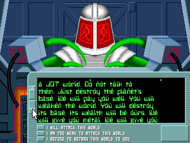 La bonne nouvelle, c’est que le jeu tourne bien sur un Amiga 500, très bien sur un Amiga 1200, et que le jeu vous laisse même choisir le niveau de détails au lancement en fonction de la puissance de votre machine – ce qui était assez visionnaire en 1990, où 95% des possesseurs d’Amiga avaient des modèles standards sortis d’usine dont la plus importante modification était l’ajout d’une extension mémoire. C’est néanmoins en termes de jouabilité que cette version offre le plus de modification, principalement parce qu’elle tire profit de la souris, bien plus naturelle pour désigner des positions à vos tanks sur la carte, ou même pour changer de poste via l’apparition d’un menu déroulant au clic droit. L’ordre de déplacement apparait dorénavant clairement avec les autres, et est désormais assigné à la touche M ; tout le reste fonctionne comme sur PC, et à peu près aussi bien, avec un rendu sonore équivalent à celui qu’offrait la Roland MT-32. Bref, à quelques petits détails graphiques près, aucune raison pour les amigaïstes de se sentir lésés face à la version PC, et c’est tant mieux.