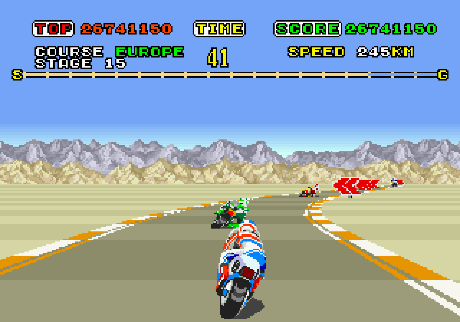Ces considérations techniques mises à part, on a affaire à un jeu efficace et amusant, mais qui finit fatalement par s’essouffler sur la durée, la faute à un certain renouvellement dans tous les domaines. En dépit des quelques nuances introduites d’un appareil à l’autre, on passe en effet son temps à refaire exactement la même chose, et même si les différents décors aident à apporter un peu de dépaysement, ils sont globalement très vides (quelques bâtiments, jamais un arbre ou un être humain en vue) et se résument pour l’essentiel à des color swaps des mêmes textures.
