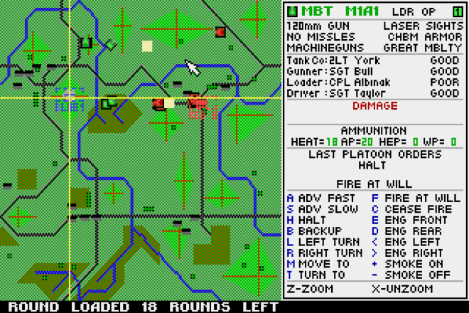 Au-dessus d’elles, un ciel d’où va pleuvoir l’enfer : des projectiles explosifs capables de raser une ville, des bombardiers et des satellites capables de lâcher davantage de missiles à plus basse altitude, et même des bombes guidées dotées de la faculté de changer de trajectoire pendant leur chute. Au sol : les villes, donc, mais aussi et surtout trois bases lances-missiles : une à gauche, une à droite et une dernière au centre. Chacune dispose de sa propre réserve de munitions et de son propre bouton de tir, et votre mission va donc naturellement d’utiliser vos propres missiles pour arrêter ceux de l’adversaire et empêcher qu’il ne rase vos cités… ou vos bases, puisque cela vous priverait d’une large part – voire de la totalité – de votre puissance de feu. Chaque ville préservée, chaque missile conservé viendra grossir votre score à la fin d’une vague, et à chaque incrément d’une valeur donnée (par défaut, 10.000 points), le jeu rebâtira une de vos villes malencontreusement rasée. Perdez toutes vos villes, et vous perdez la partie. Simple, efficace.